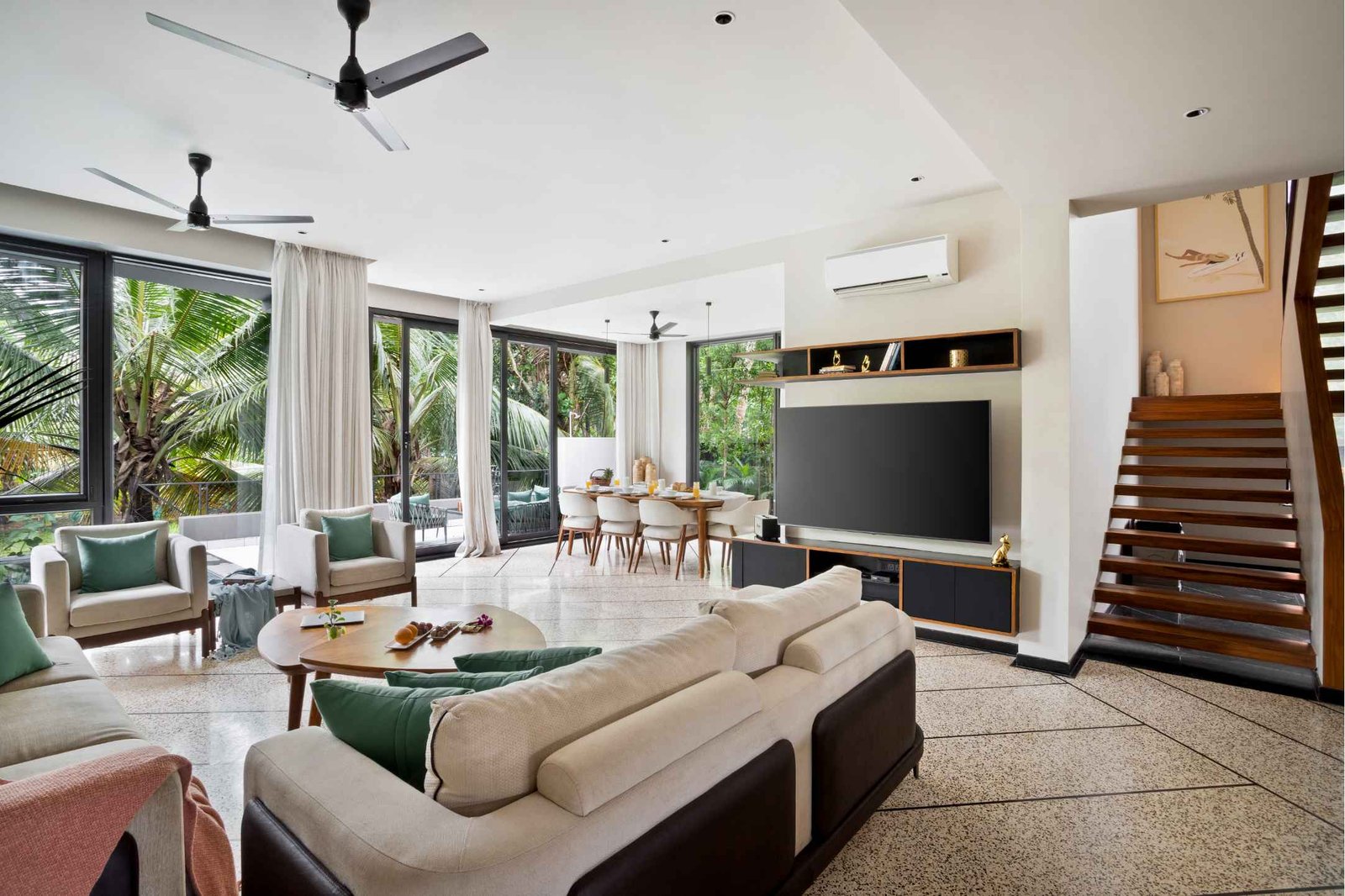 Step into a beautifully designed space featuring modern interiors, spacious living areas, and four elegantly furnished bedrooms, each crafted to provide maximum comfort and relaxation. The villa’s private pool invites you to unwind under the tropical sun, while the peaceful outdoor spaces create the perfect setting for morning coffees, evening gatherings, or simply soaking in the calm surroundings.