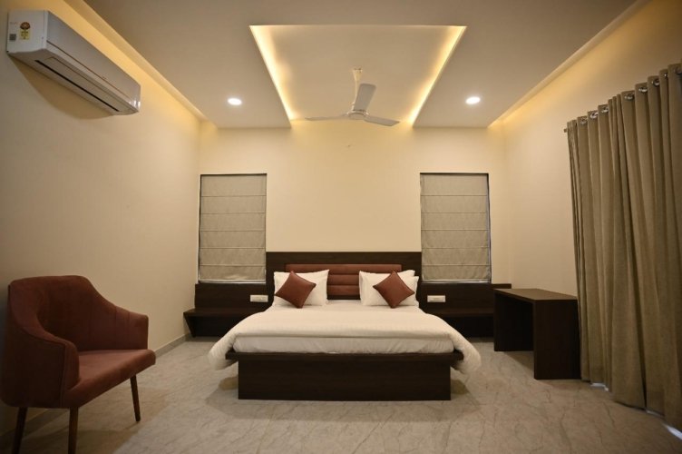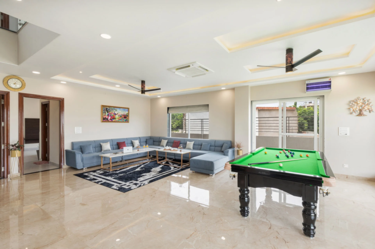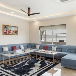 Escape the ordinary and step into a serene retreat nestled along Ajmer Road, Jaipur. This beautifully designed 6-bedroom private villa blends modern elegance with the charm of a peaceful farmstay—perfect for families, groups, and special gatherings.